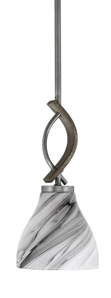 Toltec Lighting 2901-GPDW-4769 Monterey 1 Light Mini Pendant Shown In Graphite & Painted Distressed Wood-look Metal Finish With 6.25 Onyx Swirl Glass