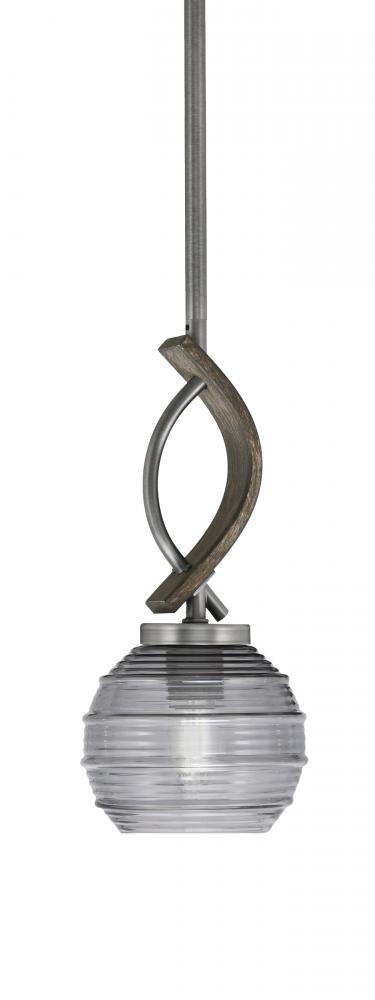 Toltec Lighting 2901-GPDW-5112 Monterey 1 Light Mini Pendant Shown In Graphite & Painted Distressed Wood-look Metal Finish With 6 Smoke Ribbed Glass