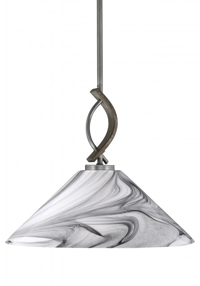 Toltec Lighting 2901-GPDW-2169 Monterey 1 Light Mini Pendant Shown In Graphite & Painted Distressed Wood-look Metal Finish With 16 Onyx Swirl Glass