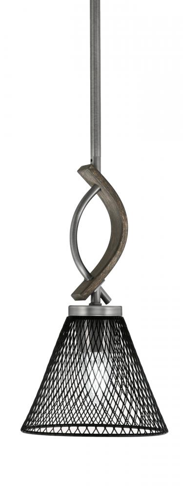 Toltec Lighting 2901-GPDW-805-MB Monterey 1 Light Mini Pendant Shown In Graphite & Painted Distressed Wood-look Metal Finish With 7 Matte Black Cone Mesh Metal Shade
