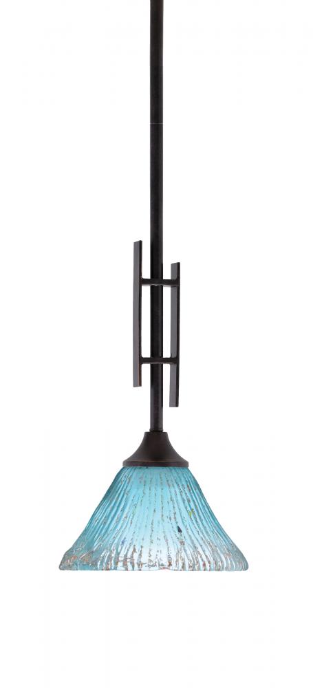 Toltec Lighting 320-DG-458 Uptowne Stem Hung Mini Pendant, Dark Granite Finish, 7 Teal Crystal Glass