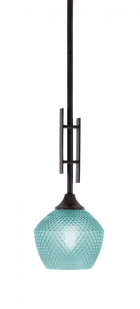 Toltec Lighting 320-DG-4625 Uptowne Stem Hung Mini Pendant, Dark Granite Finish, 6 Turquoise Textured Glass