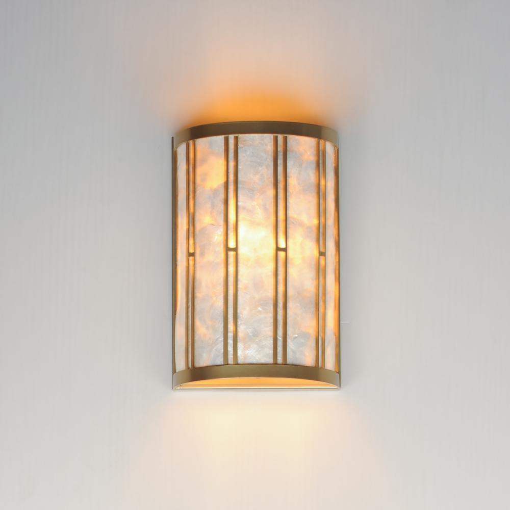 Classic in form and evoking the sea, laminae of Capiz shell are framed in paneled drum shapes. The Natural Aged Brass finish refines the coastal elements and complements the warm glow from behind the translucent panels. Available in multiple configurations