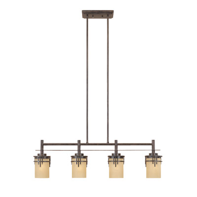 Mission Hills island lights are a modern take on a beautiful, classic mission style design that features bold lines and striking details. The warm mahogany finish and goldenrod glass shades add sophistication to the fixture and a warm diffuse to the light. These ceiling lights are built from steel, last for years to come, and install easily.