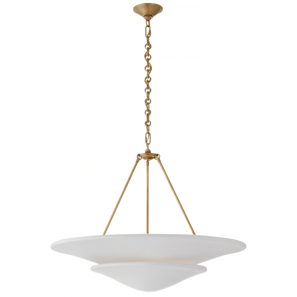 Mollino Large Tiered Chandelier in Hand-Rubbed Antique Brass with Plaster White Shade