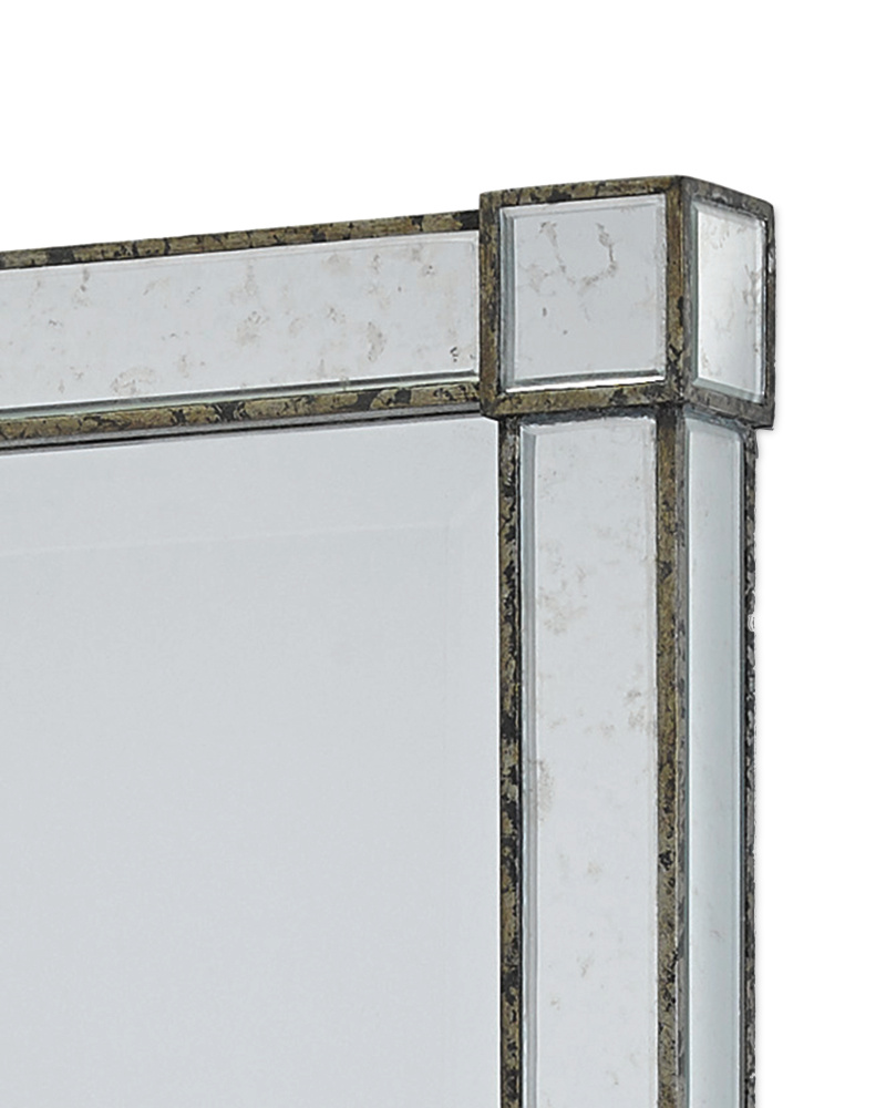 Echoing the masterful adeptness that Venetian glassmakers achieved when they turned their attention to furniture, the Monarch Rectangular Mirror is made of antique mirrored pieces that have been hand-cut, beveled, and affixed to this clean-lined design in a mix of light antique mirror and silver Viejo finishes. The silver mirror can be hung vertically or horizontally.