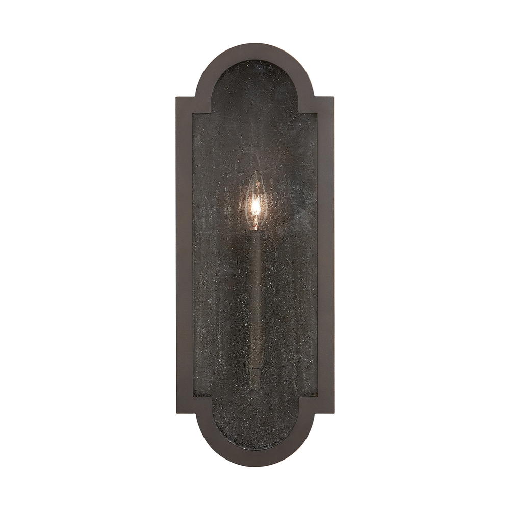 1-light wall mount with Oiled Bronze finish and Antiqued glass. "Rain or Shine" 5 year warranty protection against rusting or fading.