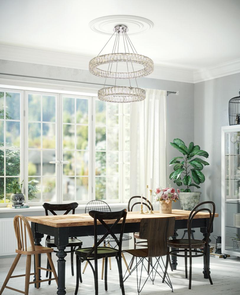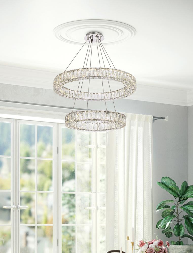 Elegant 3503G28C - Monroe 28 inch LED double ring chandelier in chrome