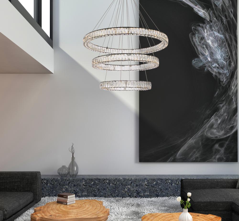 Elegant 3503G28C - Monroe 28 inch LED double ring chandelier in chrome