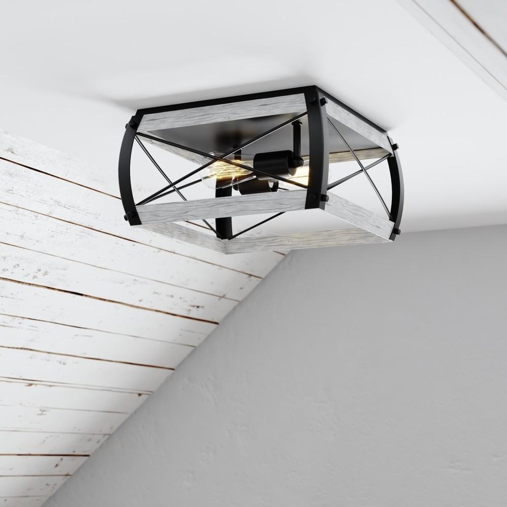 120 Volts Ash Black Cage Ceiling Dimmable Dining Room Down Dry Edison Filament Entrance Entryway Family Room Farmhouse Flush Mount Foyer Gray Grey Hallway Hardwired Incandescent Indoor Interior Kitchen LED