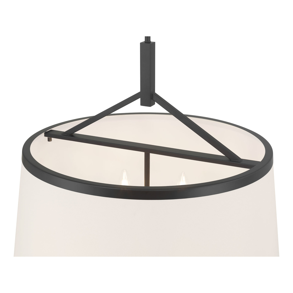 The exquisite tailoring of the Montrine Collection of pendant and convertible semi-flush lighting is as clear as black and white. Pristine terylene cotton shades proved a warm and welcoming glow against fixtures finished in dramatic matte black and are the ideal touch for modern farmhouse to transitional modern. Available as a 6-light pendant or 3-light convertible semi-flush fixture adding illuminating versatility to any space.