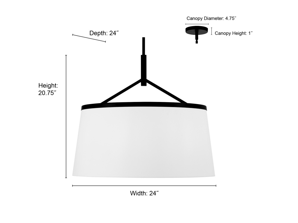This light fixture is 24'' Dia. x 20.75''H.