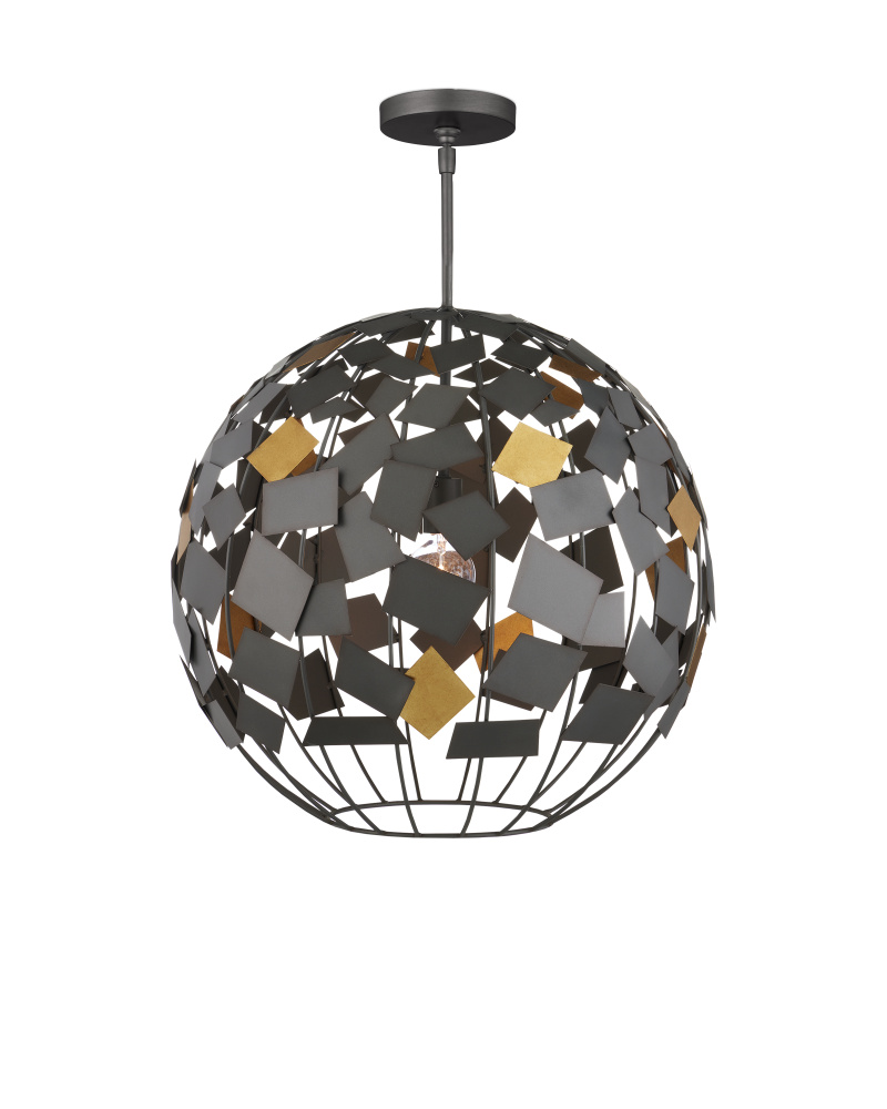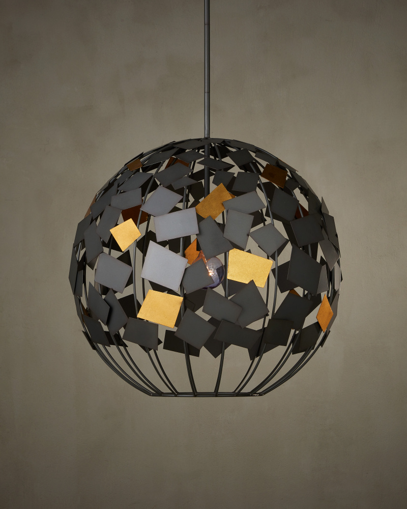 Space-inspired forms pepper Hiroshi Koshitaka’s lighting designs — orbs are nods to planets and spirals represent the swirling universes that spin in far-away realms. The Moon Night Gray & Gold Orb Chandelier is one of the former; the steel ribs in a Hiroshi Gray finish holding metal squares in the same finish intermingled with astutely placed gold confetti-like squares. This gray chandelier has an environmentally friendly slant, as the shapes welded to the frame are made from scrap metal that would have ended up in landfills. This move of staying mindful is infused in Koshitaka’s soulful outlook, which he manifests in each of his designs. Adjustable from 29.5" to 71.5" with use of included chain/rod kit/cable. If your space calls for a longer drop, additional chain/rods/cable is available for purchase.
