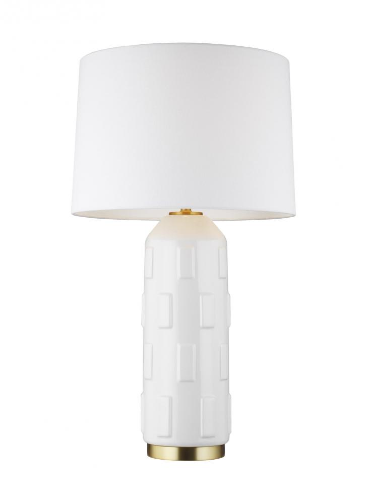 The Morada 28” table lamp features a simple, geometric textured pattern on its ceramic base, which comes in three colors.