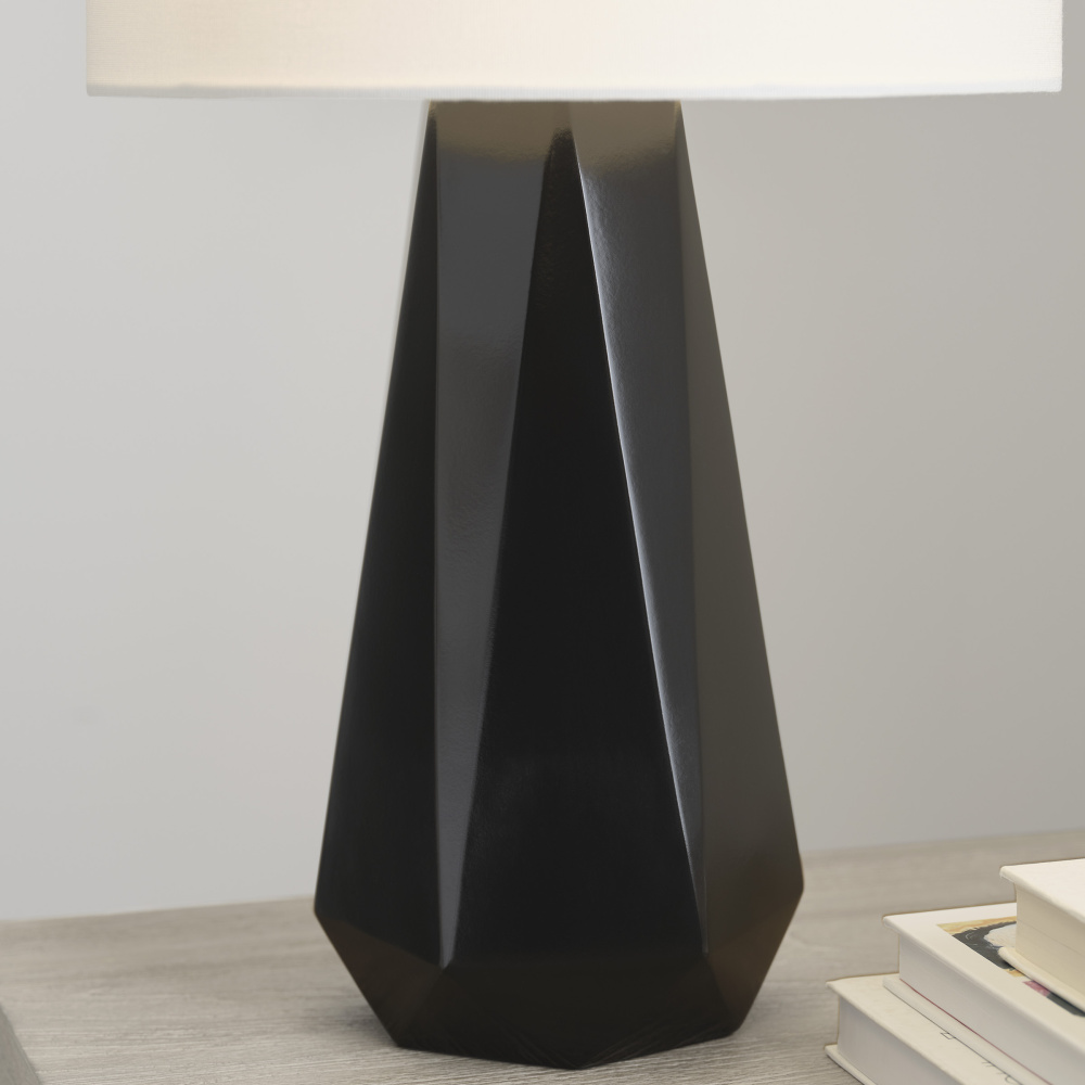 Rendered in a traditional teardrop shape but crafted of modern glass finishes, the Moresby lamps are classic with a modern twist. Topped with white cotton shades, these lamps will add bright illumination and excellent color to the room.
