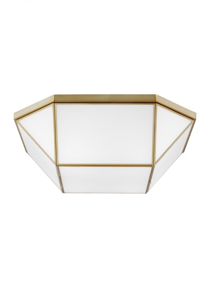 The Morrison four light flush mount fixture in satin brass supplies ample lighting for your daily needs, while adding a layer of today's style to your home's décor. A lantern-like design with curved arms connecting to a cube-shaped frame