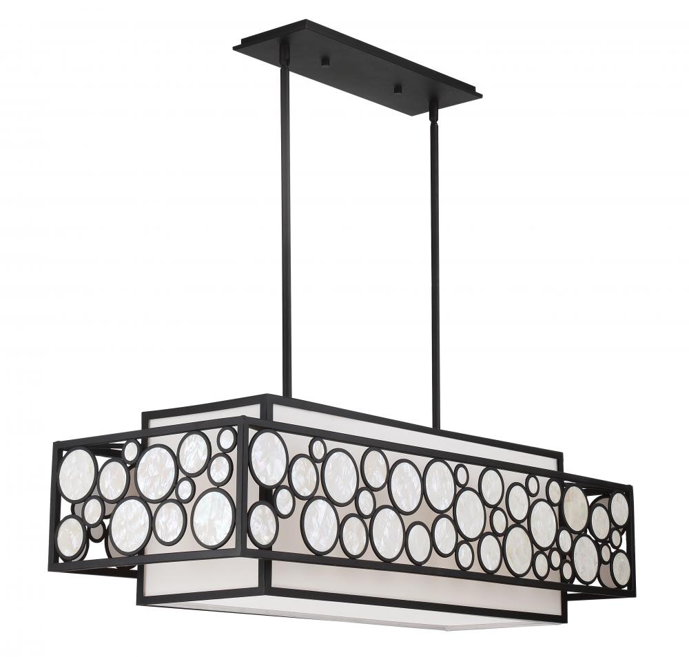 4 Light Island in Oil Rubbed Bronze Finish with White Cloth Shade