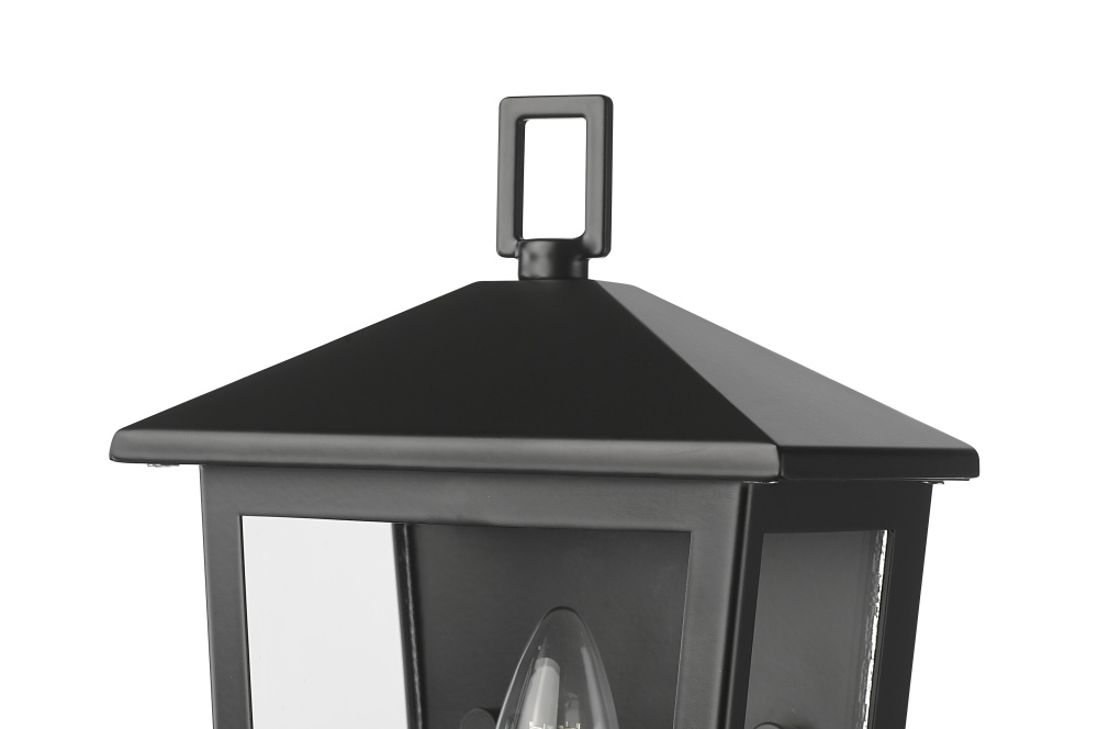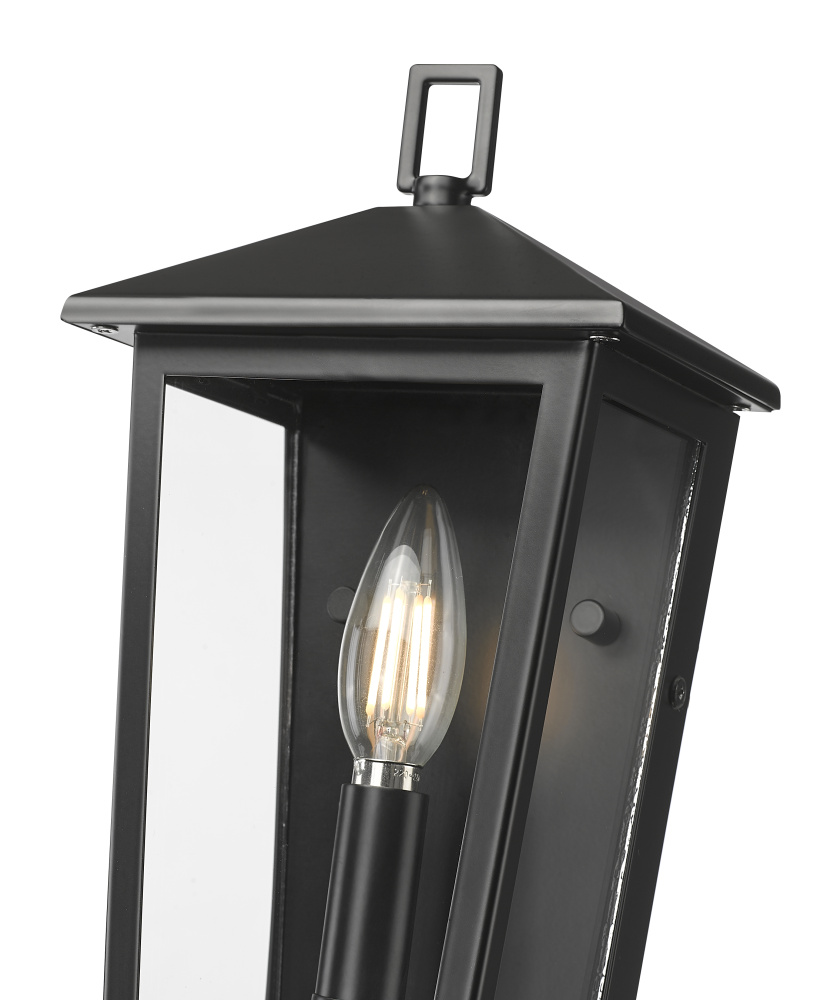 The classic lantern profile receives a decidedly modern makeover with the Munger Family of outdoor lighting. These stately fixtures feature angular details creating a tailored look and are punctuated with crystal clear glass panels. Finished in durable powder coat black, the family is available as 1- or 2-light sconces, 1-light hanging lantern, and 1-light post lamp. From the entryway, down the walk, and to the end of the drive, the overall effect is one of understated grandeur.