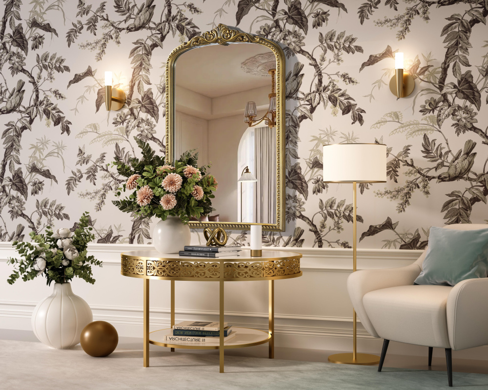The sculpted crest with scrolling accents at the top enhances its traditional and French-inspired design.