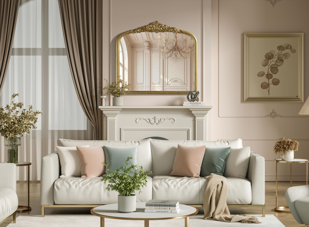 The sculpted crest with scrolling accents at the top enhances its traditional and French-inspired design.