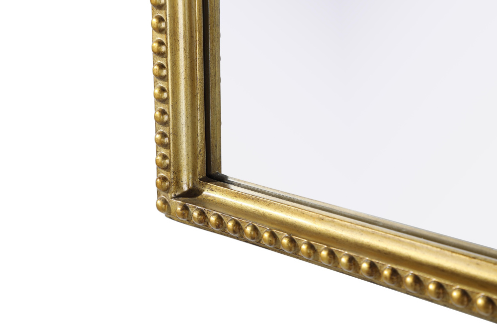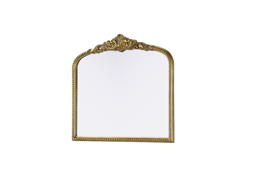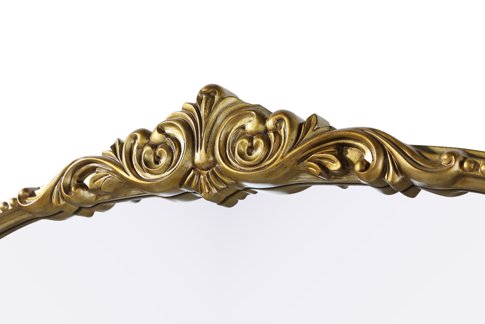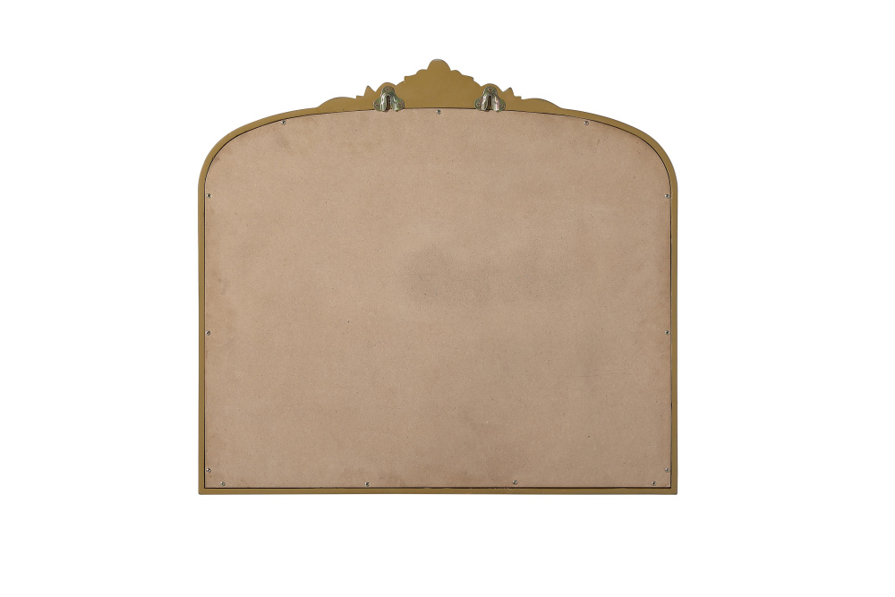 Add a touch of old-world charm to your home with this antique brass arched wall mirror, designed to bring timeless elegance and vintage character to any space. The hand-painted distressed finish gives the frame an aged, classic appeal, while the ornate crest and intricate detailing add a traditional European touch. Crafted from resin with an MDF backing board, this mirror is both lightweight and durable. Designed for vertical hanging only, it features two metal inset hangers for easy wall mounting (hardware not included). Whether placed above a fireplace mantel, in an entryway, or as an accent piece in a living room, this mirror creates a refined focal point. Available in multiple sizes and an alternative vintage bronze finish, it complements a variety of interiors, from classic and French country to vintage-inspired spaces.