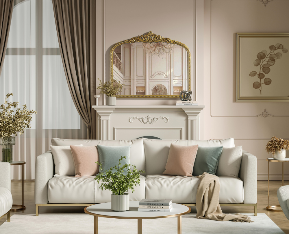The sculpted crest with scrolling accents at the top enhances its traditional and French-inspired design.