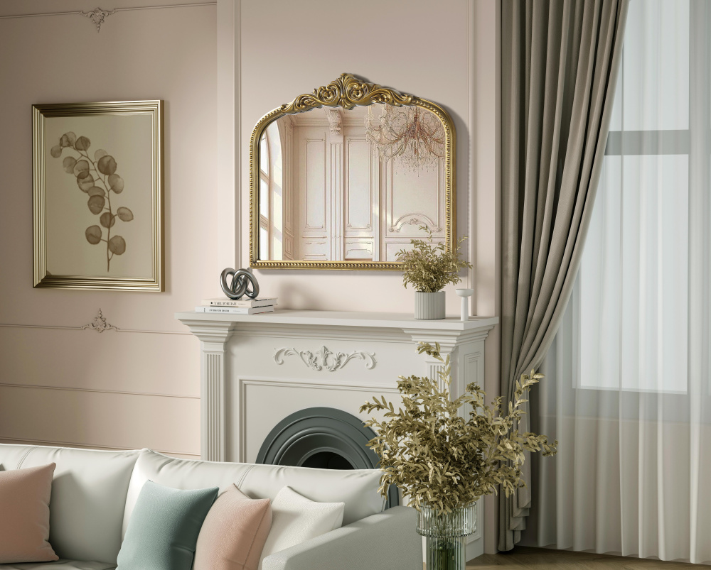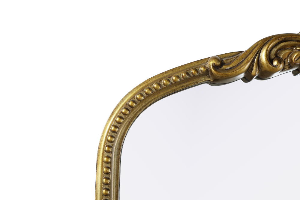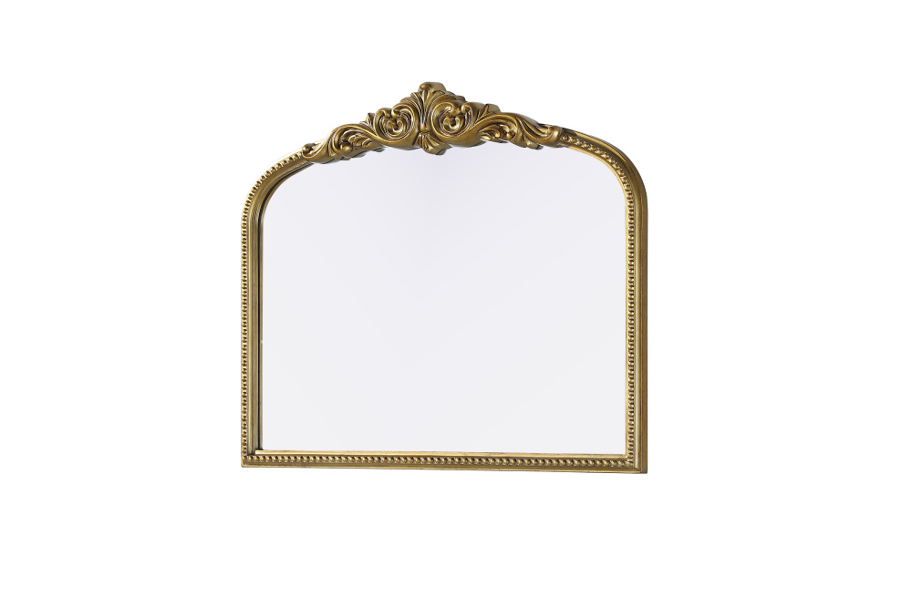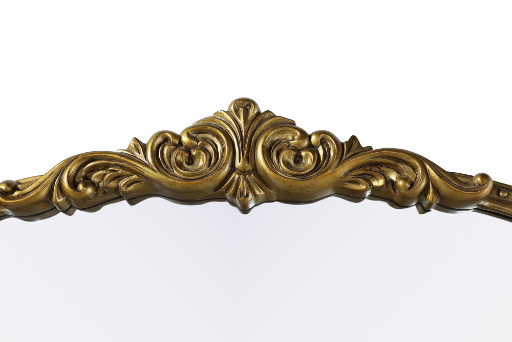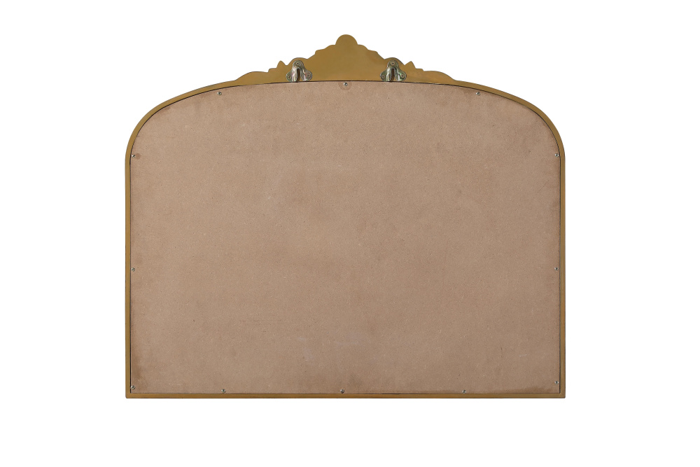 Add a touch of old-world charm to your home with this antique brass arched wall mirror, designed to bring timeless elegance and vintage character to any space. The hand-painted distressed finish gives the frame an aged, classic appeal, while the ornate crest and intricate detailing add a traditional European touch. Crafted from resin with an MDF backing board, this mirror is both lightweight and durable. Designed for vertical hanging only, it features two metal inset hangers for easy wall mounting (hardware not included). Whether placed above a fireplace mantel, in an entryway, or as an accent piece in a living room, this mirror creates a refined focal point. Available in multiple sizes and an alternative vintage bronze finish, it complements a variety of interiors, from classic and French country to vintage-inspired spaces.