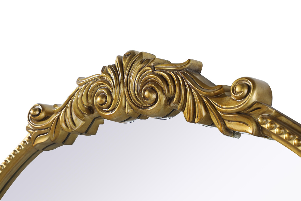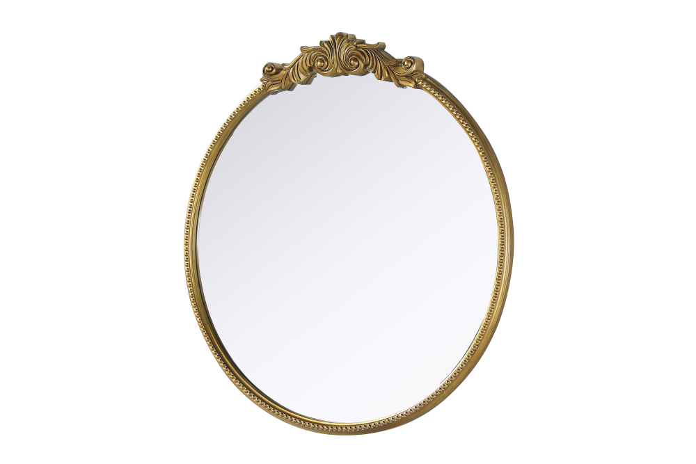 Bring vintage charm and refined craftsmanship to your space with this round wall mirror in a distressed antique brass finish. The hand-painted frame showcases ornate scroll and floral detailing, creating a timeless, old-world aesthetic. The beaded trim along the edge enhances the decorative appeal, making it an eye-catching statement piece. Crafted from resin with an MDF backing board, this mirror is lightweight yet durable. Designed for vertical hanging only, it includes a metal inset hanger for easy installation (hardware not included). Available in multiple sizes and in vintage bronze, this mirror is perfect for vanity stations, bathrooms, entryways, or living rooms, adding architectural beauty and a sophisticated touch to any space.