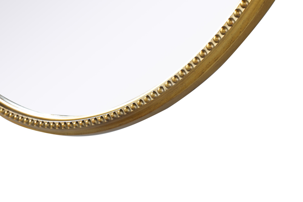 The outer edge of the mirror is lined with a delicate beaded pattern, adding texture and dimension.