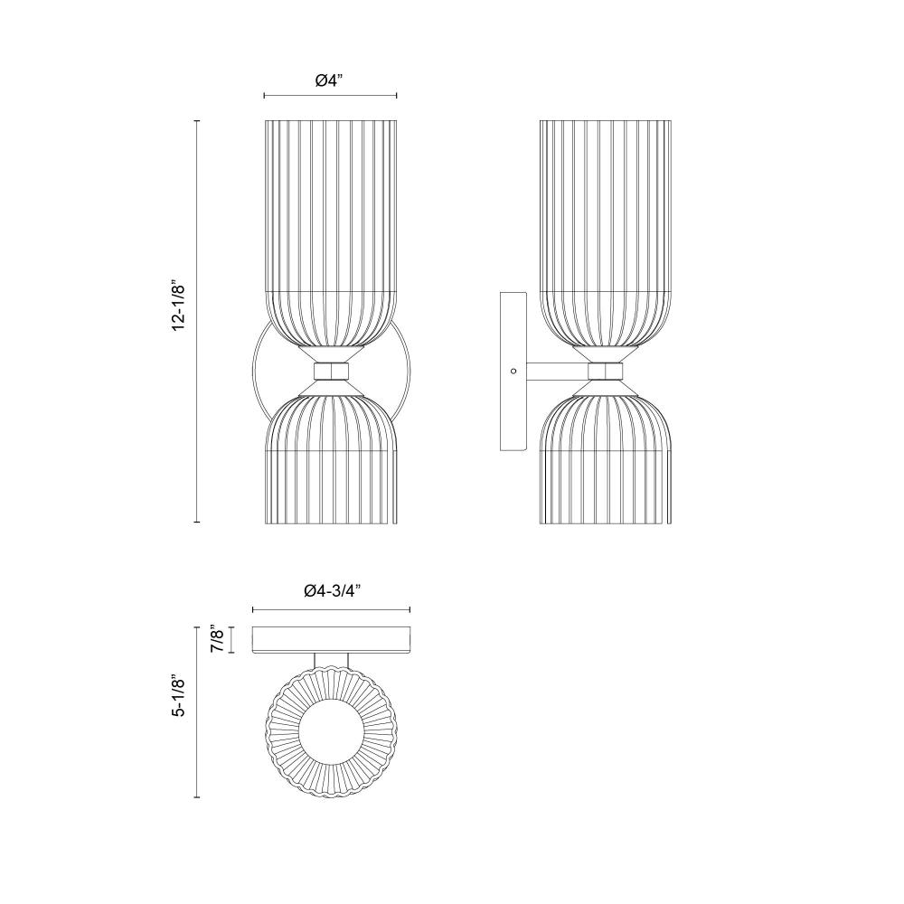 Alora Lighting WV442612BGGR - Nelly 12-in Brushed Gold/Glossy Ribbed Opal Glass Socket Wall/Vanity Light