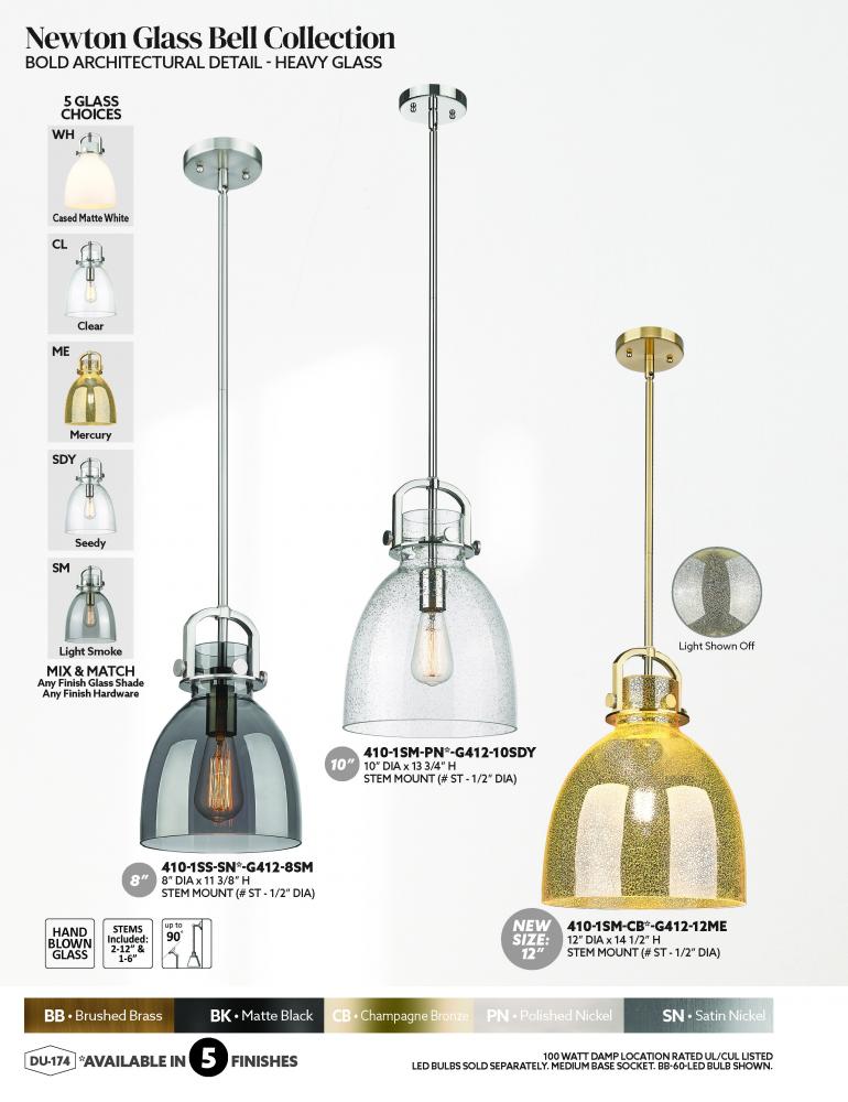 The Newton Bell is a modern industrial collection that incorporates exceptional architectural details and classic bell shaped shade. The delicately curved glass or metal shade complements the clean lines of this restoration inspired line of fixtures. The N