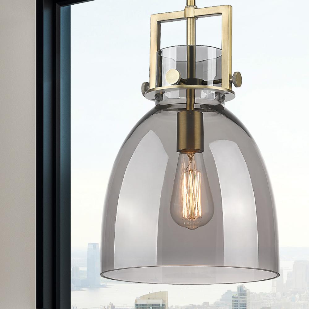 Newton Bell - 1 Light - 10 inch - Brushed Brass - Light Smoke Shade - Mini Pendant
