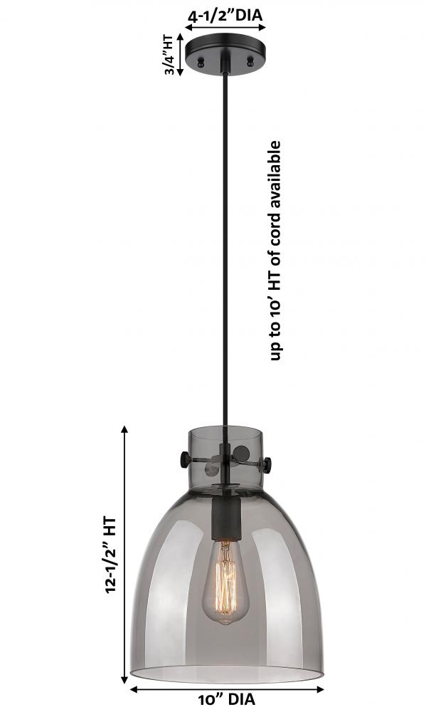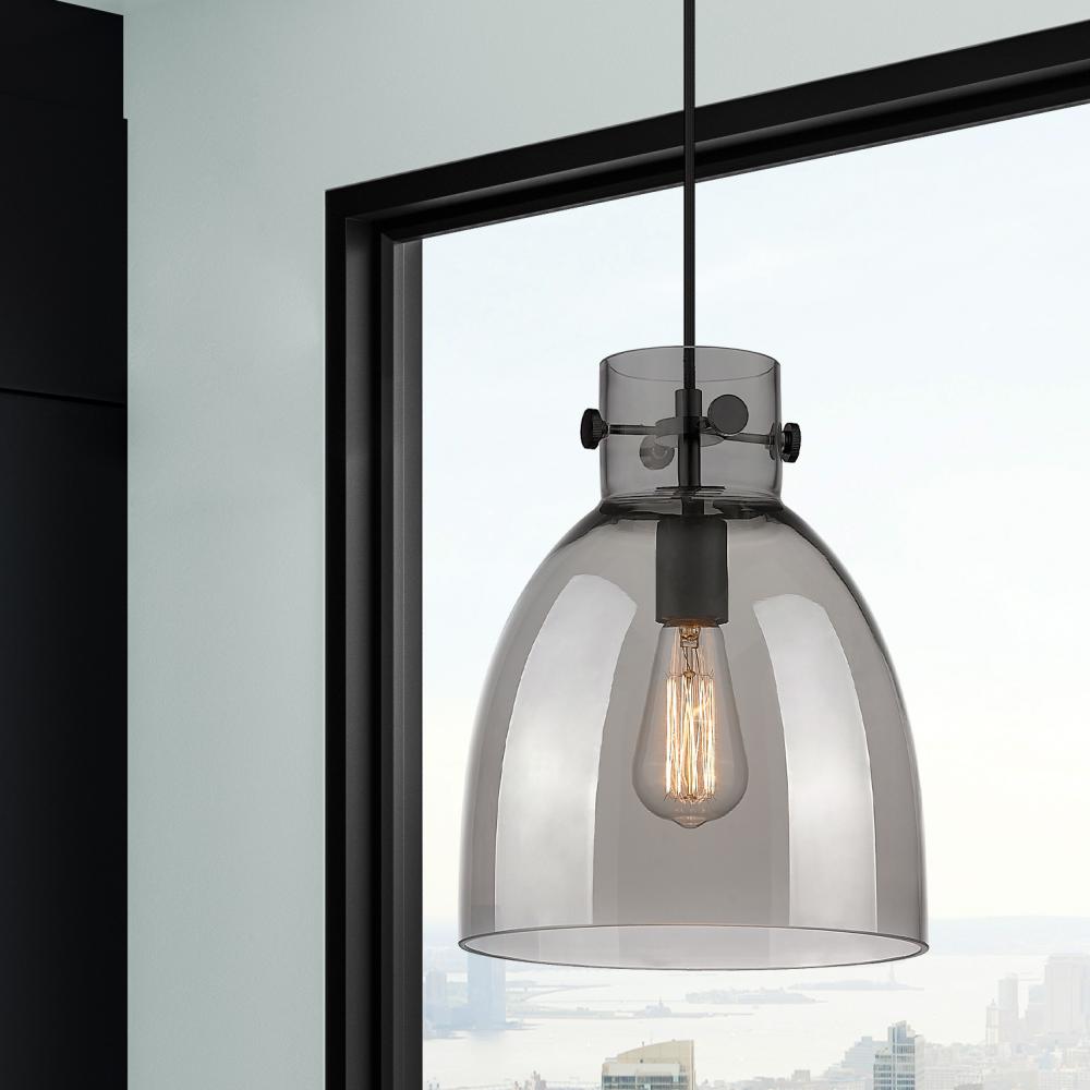 Newton Bell - 1 Light - 10 inch - Matte Black - Light Smoke Shade - Cord hung - Pendant