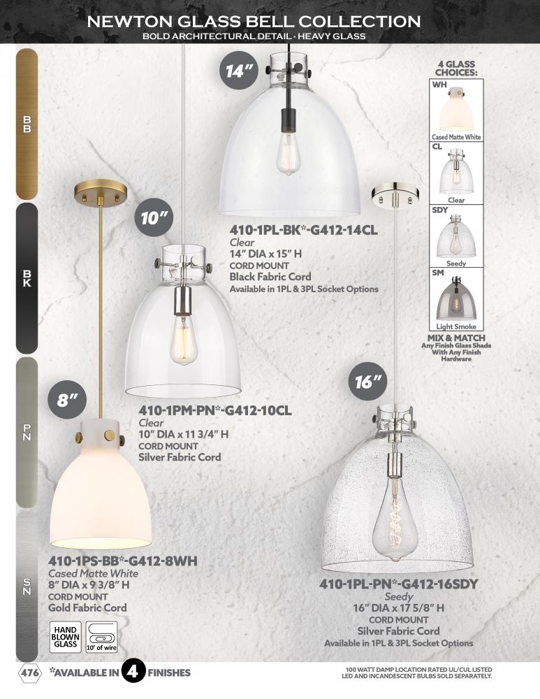 The Newton Bell is a modern industrial collection that incorporates exceptional architectural details and classic bell shaped shade. The delicately curved glass or metal shade complements the clean lines of this restoration inspired line of fixtures. The N