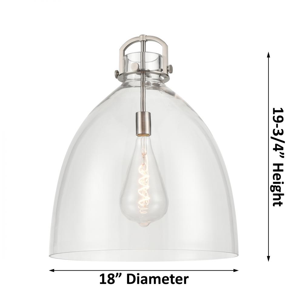 Newton Bell - 1 Light - 18 inch - Brushed Satin Nickel - Stem hung - Pendant