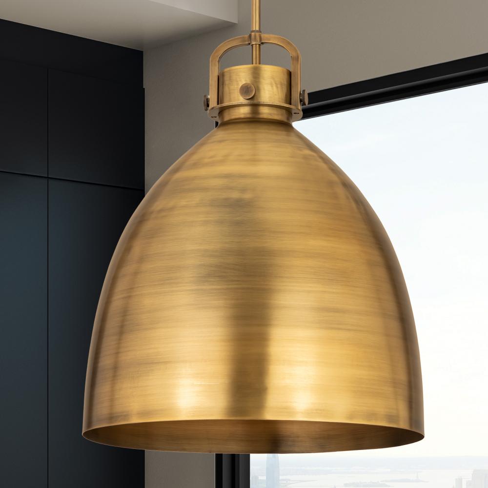 Newton Bell - 1 Light - 18 inch - Brushed Brass - Brushed Brass Shade - Pendant