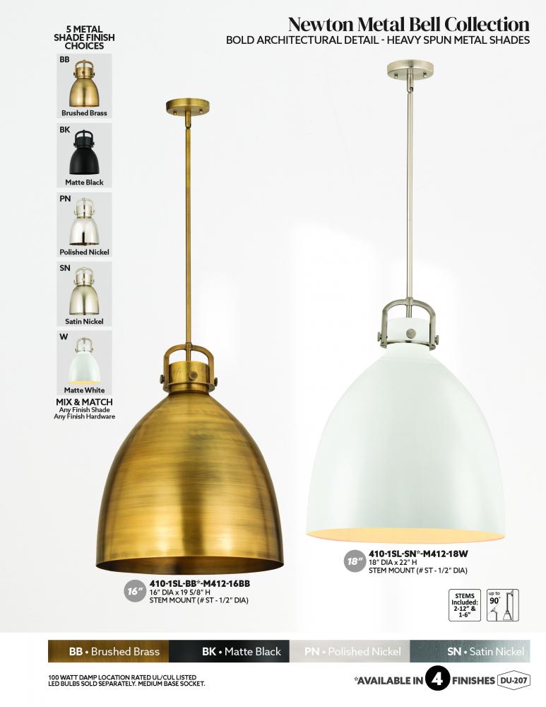 The Newton Bell is a modern industrial collection that incorporates exceptional architectural details with a beautiful globe shaped shade. The iconic Bell shaped shade is available in either glass or heavy spun metal, making this collection perfect for cr