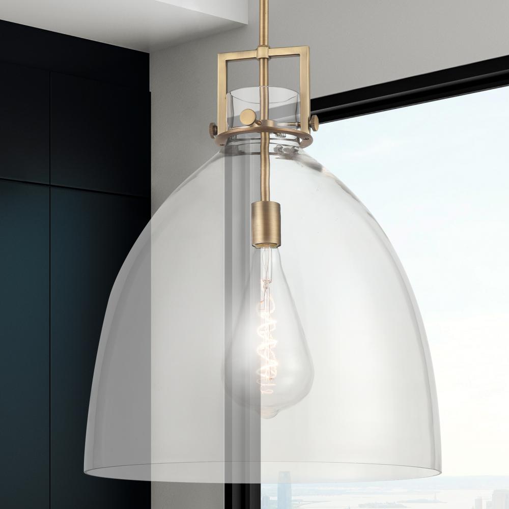 Newton Bell - 1 Light - 18 inch - Brushed Brass - Clear Shade - Pendant