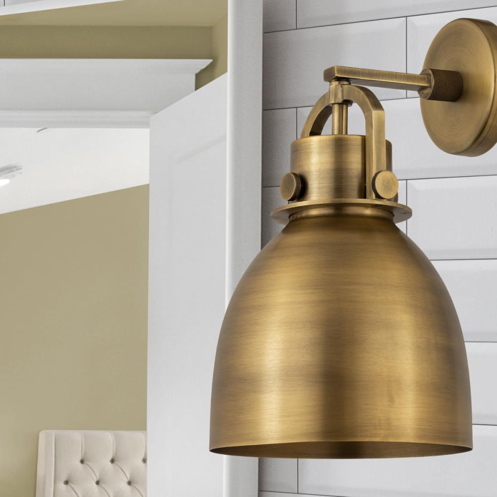 Newton Bell - 1 Light - 8 inch - Brushed Brass - Brushed Brass Shade - Sconce