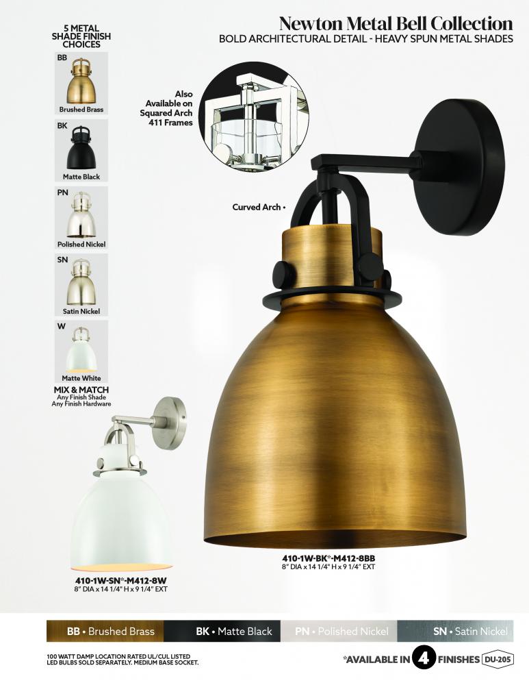 Innovations Lighting 410-1W-BB-M412-8BB - Newton Bell - 1 Light - 8 inch - Brushed Brass - Sconce