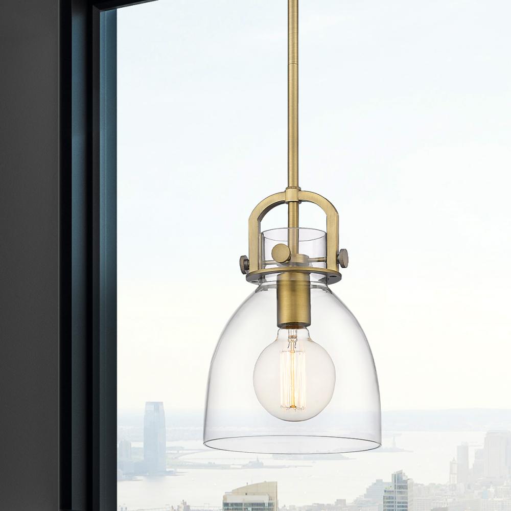 Newton Bell - 1 Light - 8 inch - Brushed Brass - Clear Shade - Stem hung - Mini Pendant