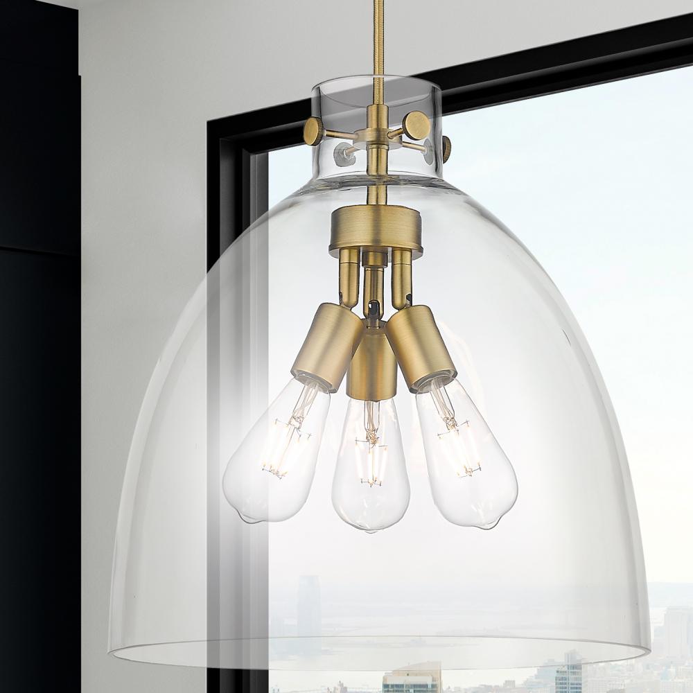 Newton Bell - 3 Light - 16 inch - Brushed Brass - Clear Shade - Cord hung - Pendant