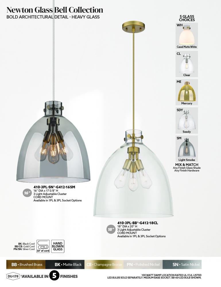 The Newton Bell is a modern industrial collection that incorporates exceptional architectural details and classic bell shaped shade. The delicately curved glass or metal shade complements the clean lines of this restoration inspired line of fixtures. The N