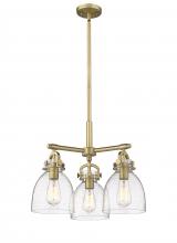 Newton Bell - 3 Light - 21 inch - Brushed Brass - Clear Shade - Pendant