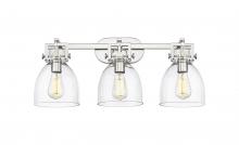 Newton Bell - 3 Light - 27 inch - Brushed Brass - Clear Shade - Bath Vanity Light