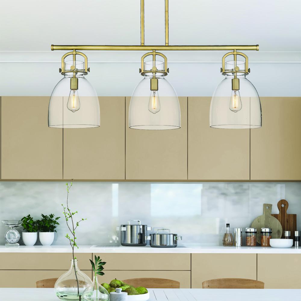 Newton Bell - 3 Light - 42 inch - Brushed Brass - Clear Shade - Island Light