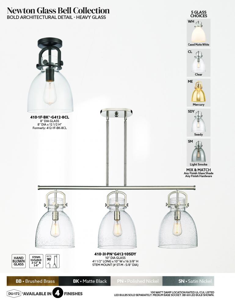 The Newton Bell is a modern industrial collection that incorporates exceptional architectural details and classic bell shaped shade. The delicately curved glass or metal shade complements the clean lines of this restoration inspired line of fixtures. The N