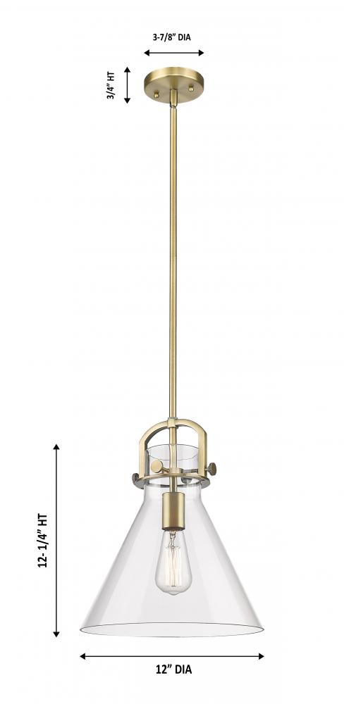 Newton Cone - 1 Light - 12 inch - Brushed Brass - Clear Shade - Mini Pendant