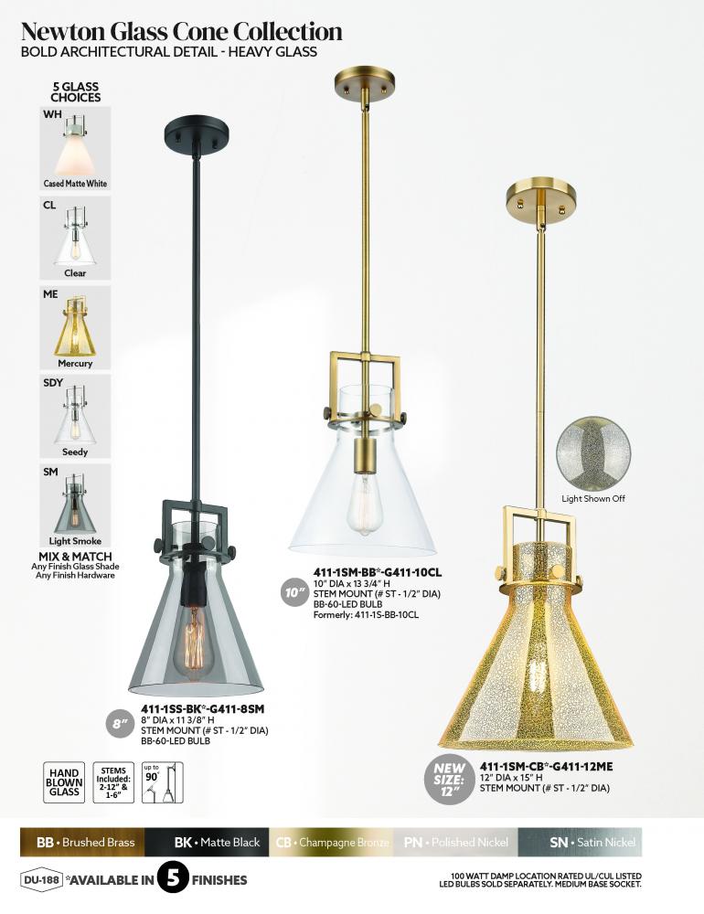 The Newton Cone is a modern industrial collection that incorporates exceptional architectural details and an equally striking cone shaped shade. The geometric shape of the glass or metal shade give this collection a charming and timeless presence. For a ki