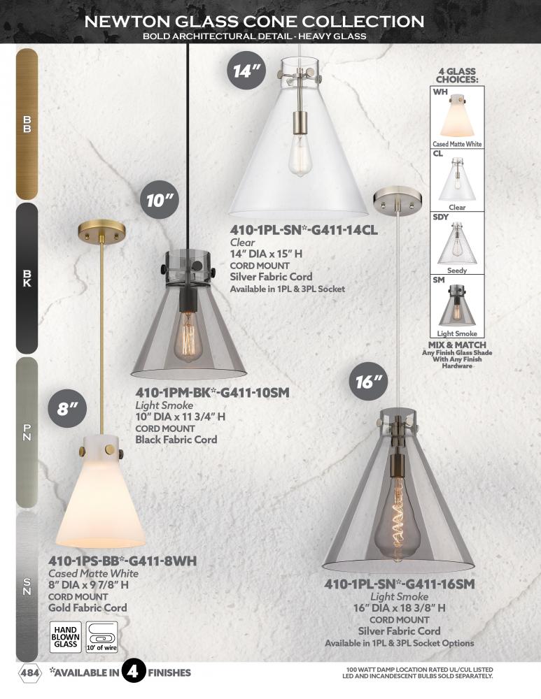 The Newton Cone is a modern industrial collection that incorporates exceptional architectural details and an equally striking cone shaped shade. The geometric shape of the glass or metal shade give this collection a charming and timeless presence. For a ki